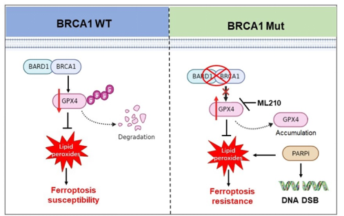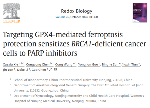 pgapp 陈果教授课题组在在生命科学学科顶尖期刊Redox Biology杂志(IF:11.8)上发表了题为Targeting GPX4-mediated ferroptosis protection sensitizes BRCA1-deficient cancer cells to PARP inhibitors的文章。该研究发现BRCA1通过泛素化GPX4并促进其降解,从而促进铁死亡易感性,并证明了GPX4作为BRCA1突变癌症治疗靶点的潜力。同时,发现PARPi能够诱导铁死亡,BRCA1突变由于其高表达GPX4导致其对铁死亡耐受,靶向GPX4能够在BRCA1突变卵巢癌中与PARP抑制剂产生协同的抗肿瘤作用。