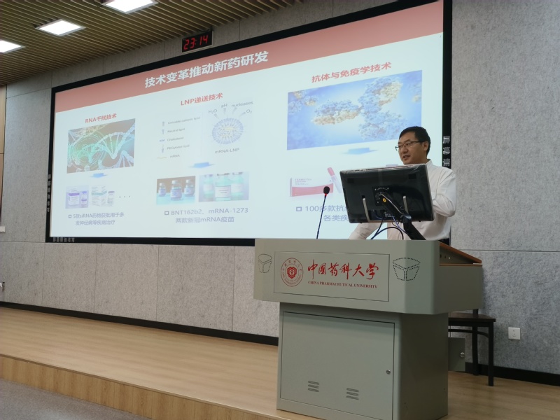 报告会上,王均教授首先分析了目前单抗药物的治疗现状,并向我们分享了其在该领域的最新研究成果,一种纳米适配子平台技术,即通过将纳米适配子与单克隆抗体药物孵育,即可便捷、高效、可控地制备出类双/特异性纳米抗体,实现单克隆抗体的“多价化”、“多特异性化”和“多功能化”,有望大幅提高单抗药物的临床疗效,并将更多临床使用或者开发中的单抗药物应用到肿瘤治疗中。重点阐述了抗体药物在肿瘤治疗中的巨大前景。报告会互动交流环节,参会人员积极提问,师生互动热烈,参会人员获益匪浅。报告会在一片热烈掌声中圆满结束。