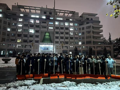 学生会、自律会、青协学生志愿者,协助后勤管理处的老师们,共同开展一场冬日铲雪活动,充分践行学生组织服务同学的宗旨,在风雪中为师生铲出一条条暖心路。