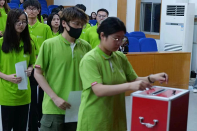 报告结束后,111名团员代表依次上前投票,采用等额选举的方式选举陈淑云、李天一为共青团PG App