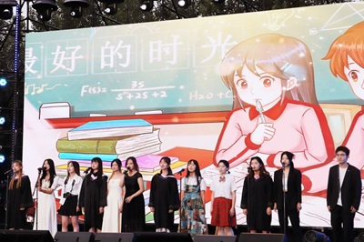 学子们的朝气、活力以及对青春的诠释。三部情景剧为观众带来了深刻的艺术享受和情感体验。情景剧《提意见》以职场为背景,通过诙谐幽默的方式揭示了职场问题,同时展现了员工们敢于直言、勇于改革的精神。《百年芳华》以中国近代史为背景,展现了让观众穿越时空,亲身感受那段激荡人心的岁月。《影子戏—青春剪影》通过影子戏的形式展现了学生们在校园中的点滴日常,一幕幕看似寻常却充满温情的画面让观众感受到了青春的无限美好和珍贵。歌曲《我们的爱》以深情的旋律和真挚的歌词营造了一个充满回忆和感动的氛围,生动地诠释了青春岁月,让人不禁泪目。一首充满地方特色的《高山青》让观众仿佛置身于高山之巅,感受到大自然的壮丽和宁静。晚会过半,由主持人朗读在场毕业生们写下的寄语,替他们传递对母校、老师的感激,对自己的祝福,以及对未来的美好憧憬。一首深刻而富有哲理的《活着》传达了对生命和人生的深刻思考,鼓励毕业生们更加坚定地追求自己的梦想。摇滚风格的《河流》汩汩流动,湍急汹涌,表达了青年坚守自我砥砺前行的态度,希望毕业生们能勇敢面对未来的挑战与磨砺。器乐合奏《上春山》以欢快的节奏和动感的旋律,传递了春天的气息和希望的力量,祝愿毕业生们在未来的道路上一路顺风,步步高升。晚会的最后,2024届毕业生带来的一首《鲜花》将现场氛围推向高潮,观众们纷纷将手里的鲜花抛向舞台,表达真切的祝愿。