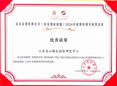 山东龙山绿色经济研究中心选送张玉泽老师的《关于加强我省黄河水资源超载的建议》、田洪刚老师的《“两业”融合与新业态演化》两项成果分别入选年度精品成果及年度优秀成果。同时,山东龙山绿色经济研究中心也通过了第三方评估,被批准为“山东省智库联合会(山东智库联盟)会员单位”。