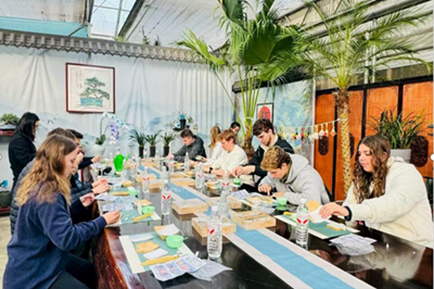 游学团还赴百合传统文化基地体验中医文化。在基地工作人员讲解下,学生们了解中医理论、中药材辨识等知识,并亲手制作艾草、薄荷等材质的传统香囊。动手过程让大家直观感受中华传统手工艺与中医文化的独特魅力。