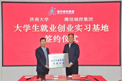 党委书记彭亚宁作为代表与潍坊城投集团正式签署《大学生就业创业实践基地协议书》,标志着合作迈入实质性推进阶段。