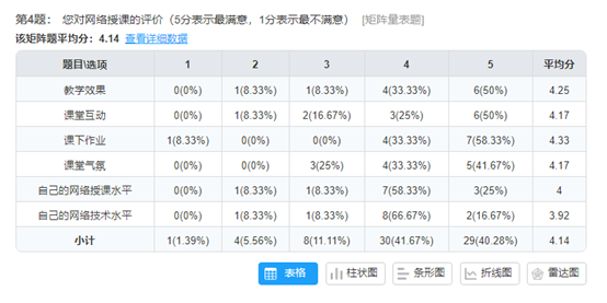 (3)由于学生所处地域不同,网络使用条件不同,建议任课教师能够增加部分录播内容,或直播同时进行录屏,方便学生回看,以加强对知识点的掌握,保障教学效果。