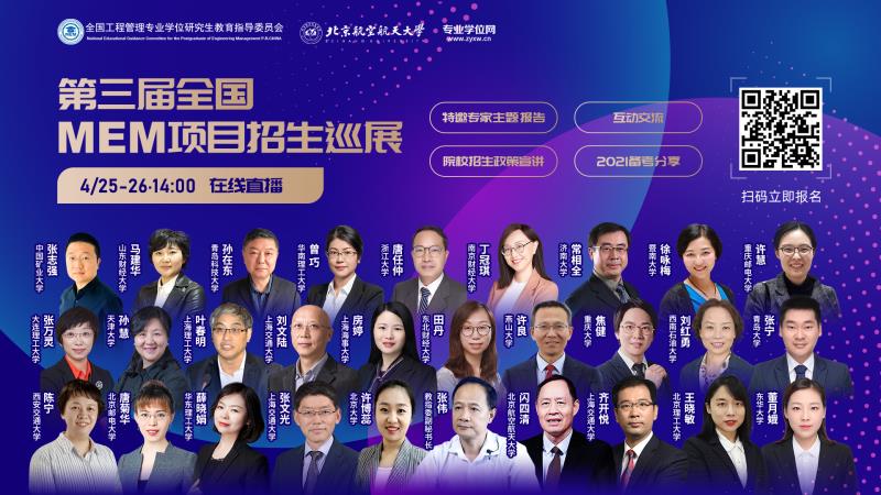 第三届全国MEM招生巡展是由全国工程管理专业学位研究生教育指导委员会和北京航空航天大学主办,专业学位网协办的一次MEM院校招生政策“云”宣讲活动,本次活动共有来自天津大学、浙江大学、大连理工大学、北京航空航天大学、上海交通大学等30多所院校参加,14位院校负责人做了招生宣讲报告,其中来自山东的青岛大学、青岛科技大学、山东财经大学和PG App