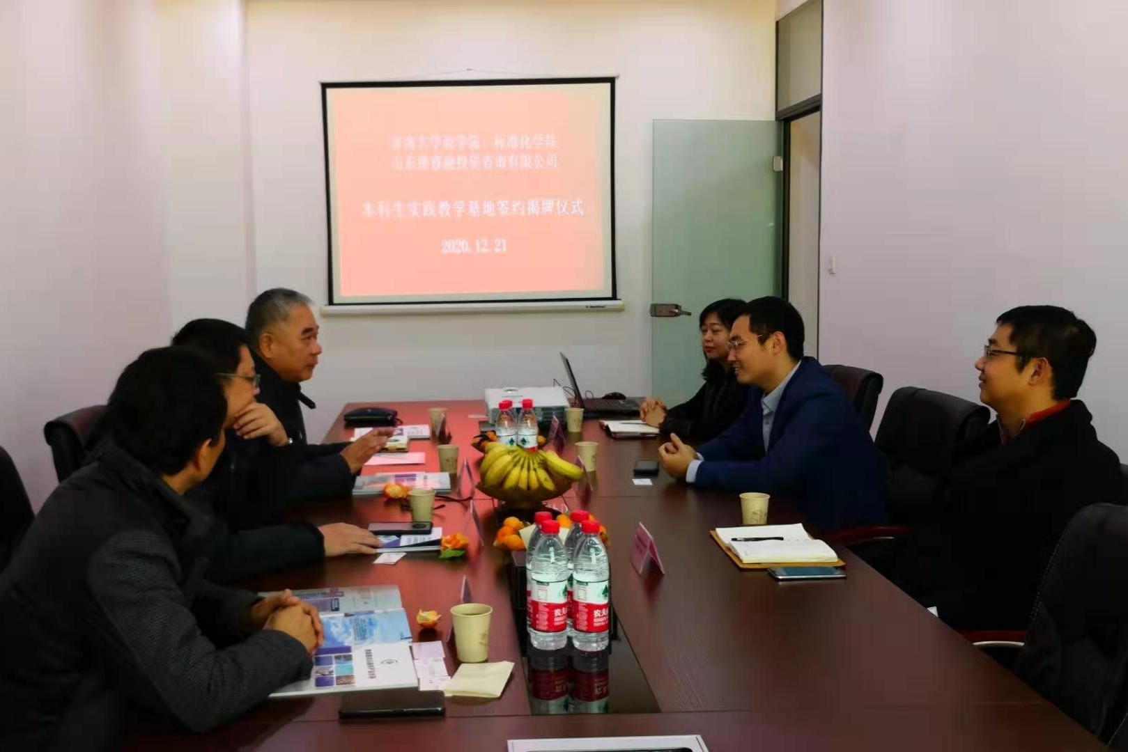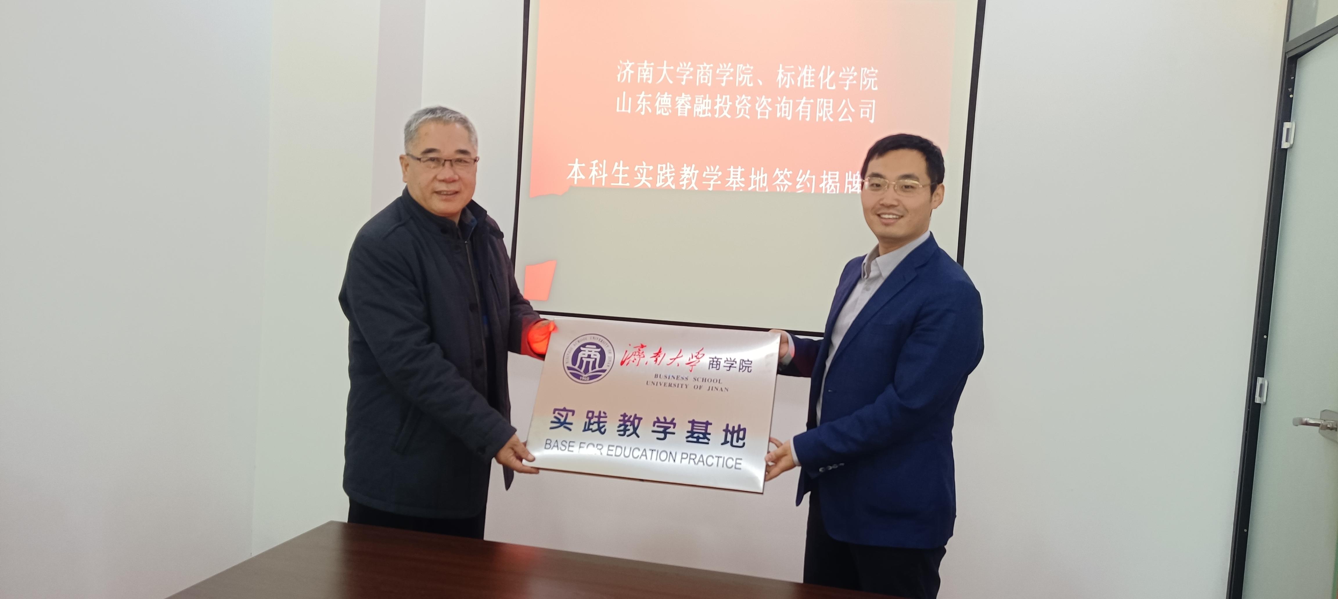 本科生实践教学基地签约挂牌仪式。山东德睿融投资咨询有限公司总经理孟栋、副总经理刘毅飞、副总经理王晓燕、PG App