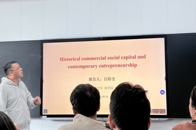 报告中,白教授围绕历史商业社会资本与当代创业行为之间的内在联系展开深入探讨,从经济史视角出发,分析了近代商会对创业文化、市场信任机制的培育与现代企业家精神的传承关系,阐述了社会资本在区域经济发展和创业中的作用机制。通过实证研究与跨学科分析,白教授展示了历史制度背景对当代创业生态和区域经济活力的深远影响。