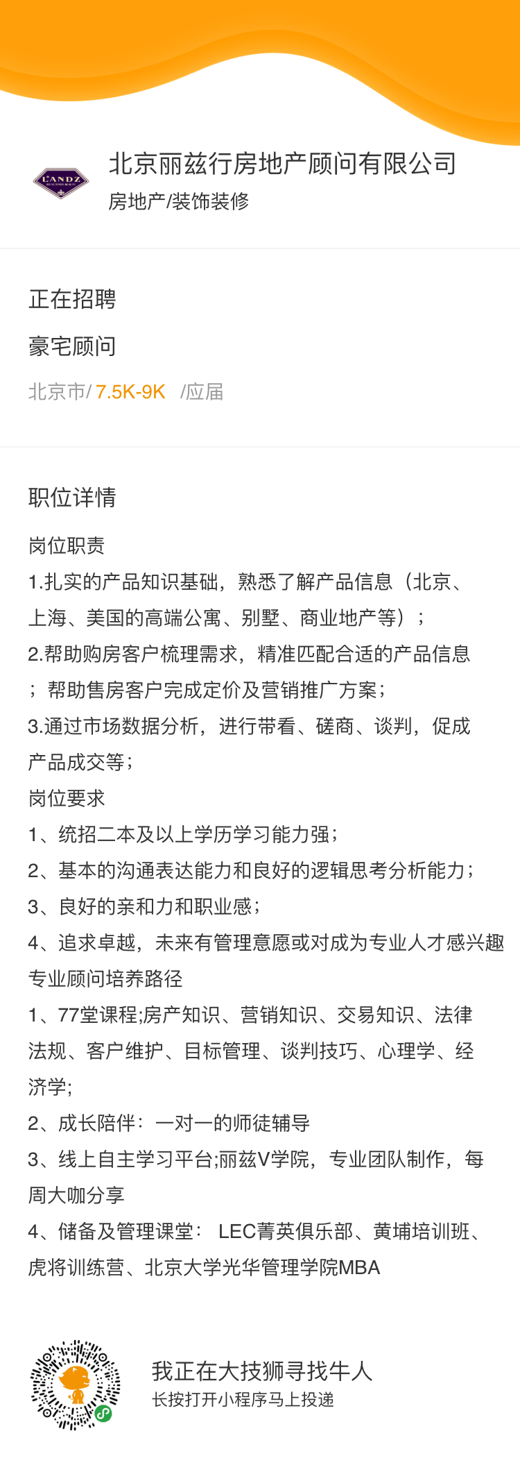 关于豪宅顾问岗位的招聘要求,如下这个长图上有信息,