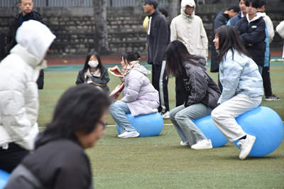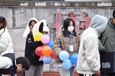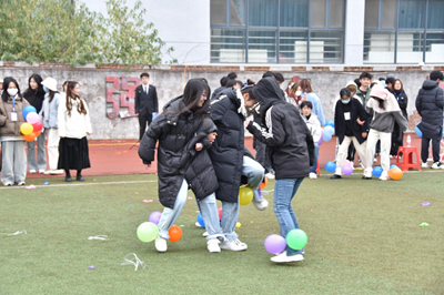 在气球保卫战游戏环节,大家系着气球蓄势待发,一遍遍思考自己该如何踩爆更多的气球,思索着如何让自己一直留在场上。每个小组上四名同学,各自代表着团队而战,使命感满满。比赛开始,现场的加油声欢呼声此起彼伏 ,热闹非凡。