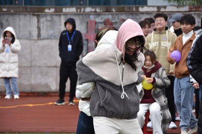 在“拯救猪猪侠”环节,伴随着猪猪侠主题曲,同学们欢快进行这游戏。既小心翼翼,努力保护好背后的气球,又相互配合奋力向前,追求速度上的胜利,来拯救那位终点的“猪猪侠”,这是一场真正考验默契与速度的完美比赛。