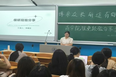 举办“博采众长,助力研途”推免、考研经验分享会,此次分享会共分为三个版块,分别为推免经验分享会、工商管理类考验经验分享会、经济学类考研经验分享会。2020级优秀学生代表李曦亚、熊惠珍、李雨珂、樊聪慧、许梦俐、王瑞雪、李珑烨、薛子阳、武婧涵、邹瀚林、闫磊、王永柱等受邀进行专题分享,2021级、2022级、2023级学生参加此次活动。