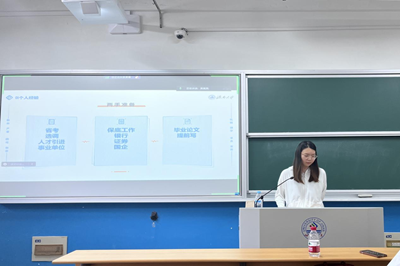 2021级会计专硕研究生孙雪艺同学成功收到中国农业银行淄博分行的录用通知。她在分享过程中首先指出善用多渠道获取就业信息的重要性,然后重点强调面试技巧,针对银行面试的高频问题进行分析说明,并结合自身的面试经历总结出诸多经验教训。她提出,在求职过程中心态平和是关键。最后,孙雪艺同学建议大家在求职过程中用表格记录自己的求职进度,合理规划时间。