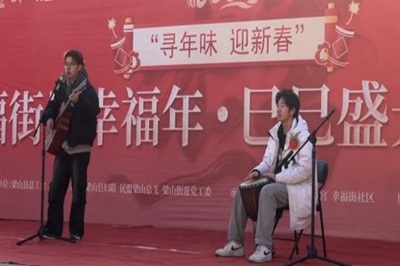 飞天艺术团器乐部的志愿者们联合社区工作人员在社区广场举办文艺演出。萨克斯《荷塘月色》、吉他弹唱《春风十里》以及绘声绘色的激情演讲《摒弃封建》等节目赢得阵阵掌声。值得一提的是,学生们还邀请社区老年合唱团同台演绎《我和我的祖国》,并组织社区老人参与“中华 舞龙”互动节目。现场化作欢乐的海洋。参与表演的大二学生马恺泽坦言:“第一次在寒风中演出,但看到爷爷奶奶们眼里的笑意,所有的辛苦都值得。”
