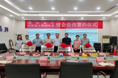 与山东富士制御电梯有限公司签订了本科生实践教学基地协议,并揭牌。