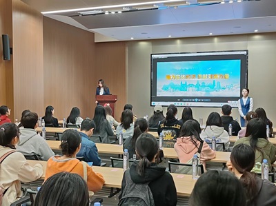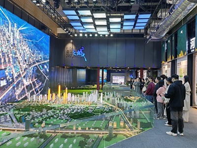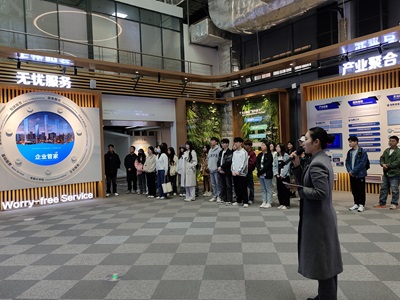师生一行首先来到济南中央商务区的文化服务中心,了解济南中央商务区的发展历程、建设情况和入驻企业等。通过宣传短片和讲解员的细致讲解,学生深度感受到中央商务区日新月异的变化,了解了驻济企业的数量、规模、企业类型以及企业招聘信息。
