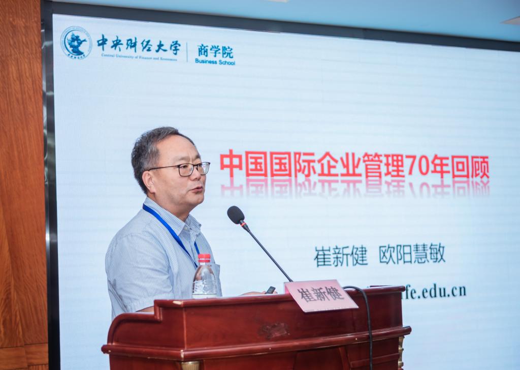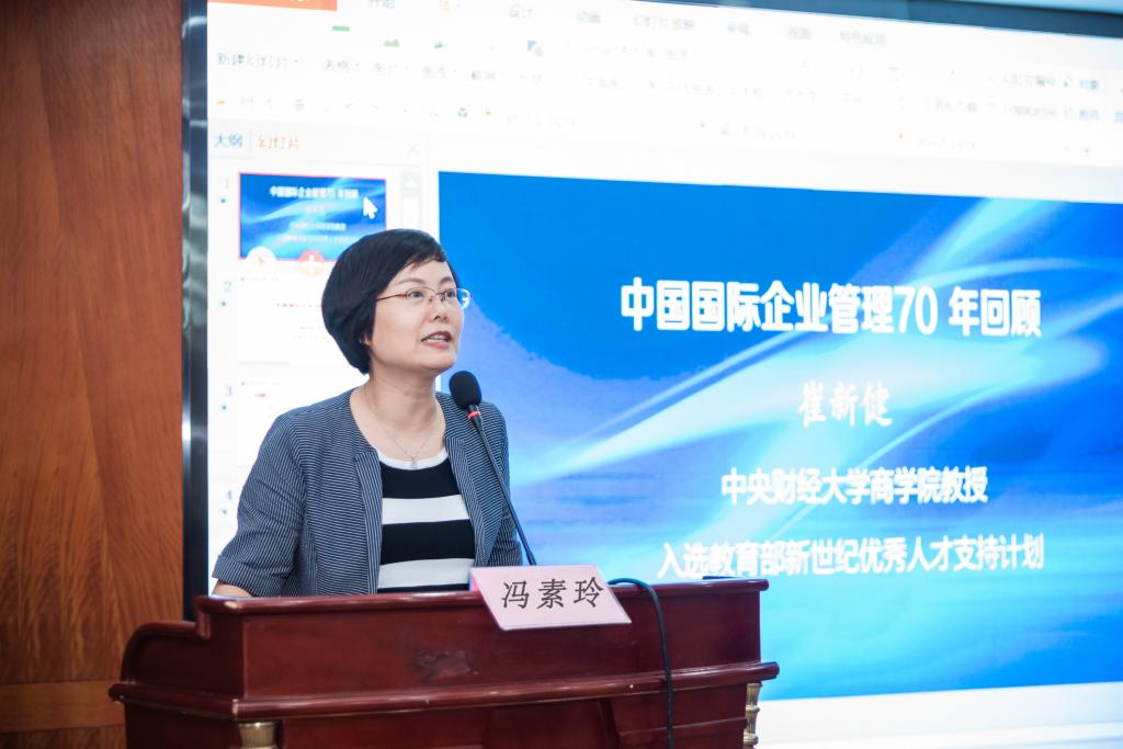 教授、教育部新世纪优秀人才支持计划入选者崔新健演讲主题为《中国国际企业管理70年》,他提出中国国际企业管理发展历经国际化探索、内向国际化和外向国际化三个阶段,并存在关联关系:国际化探索为内向国际化探寻适宜的国际化路径;内向国际化为外向国际化构建国际化优势和基础。