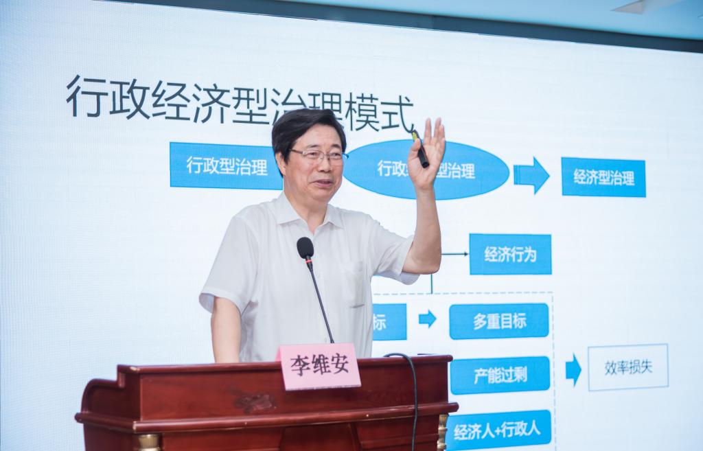 天津财经大学原校长、长江学者特聘教授李维安做了主题为《中国公司治理转型》的报告。李教授介绍了公司治理改革发展的阶段和演进过程,以及公司治理模式从行政型到经济型的转型,探讨了行政经济型治理模式以及从国际背景、网络治理、绿色治理方面探索新时期中国公司治理转型要求。