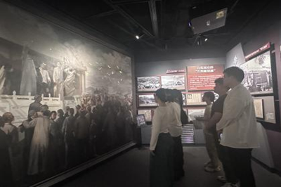 在纪念馆内,同学们专注地观看了每一件历史实物、图片和文献资料,深入探究了从1921年至1937年中共山东早期党组织创建、发展和斗争的辉煌历程,以及中共一大代表王尽美和邓恩铭的革命事迹。从中国共产党的创立到抗日战争、解放战争的峥嵘岁月,一幅幅鲜活的历史画卷生动再现了山东早期共产党员不畏艰险、勇于牺牲的革命精神。参观过程中,同学们不时驻足凝视、沉思良久,无不被革命先烈英勇无畏的精神所深深震撼,对革命先辈的敬仰之情油然而生。