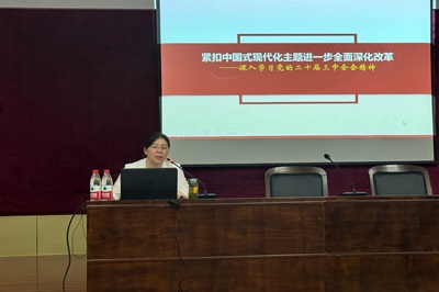 市中区委党校杨立新副教授以《紧扣中国式现代化主题进一步全面深化改革——深入学习党的二十届三中全会精神》为题,从“深刻认识党的二十届三中全会的重大意义”“深刻认识进一步全面深化改革的指导思想、总目标和重大原则”“全面准确理解《决定》提出的进一步全面深化改革重大举措”“严格落实党中央关于贯彻落实全会精神的基本要求”等四个方面对党的二十届三中全会精神作了全面深入的阐释解读。辅导报告条理清晰、逻辑严密,说理透彻,融理论性、思想性和实践性于一体,为全院老师进一步全面理解和准确把握全会精神提供了指导、梳理了脉络、打下了基础。