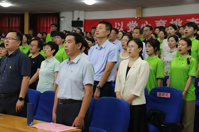 大会在庄严的国歌声中拉开帷幕。随后,器乐演奏《万疆》以悠扬的旋律勾勒出祖国的壮丽山河,独唱《我和我的祖国》用深情的歌声表达了对党的热爱与祝福,瞬间点燃了全场的爱国情怀。