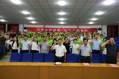 在新党员宣誓仪式上,全体新党员面向党旗庄严宣誓,老党员们一同重温入党誓词,铿锵有力的誓言在报告厅内回荡,彰显了党员们对党的忠诚与担当。