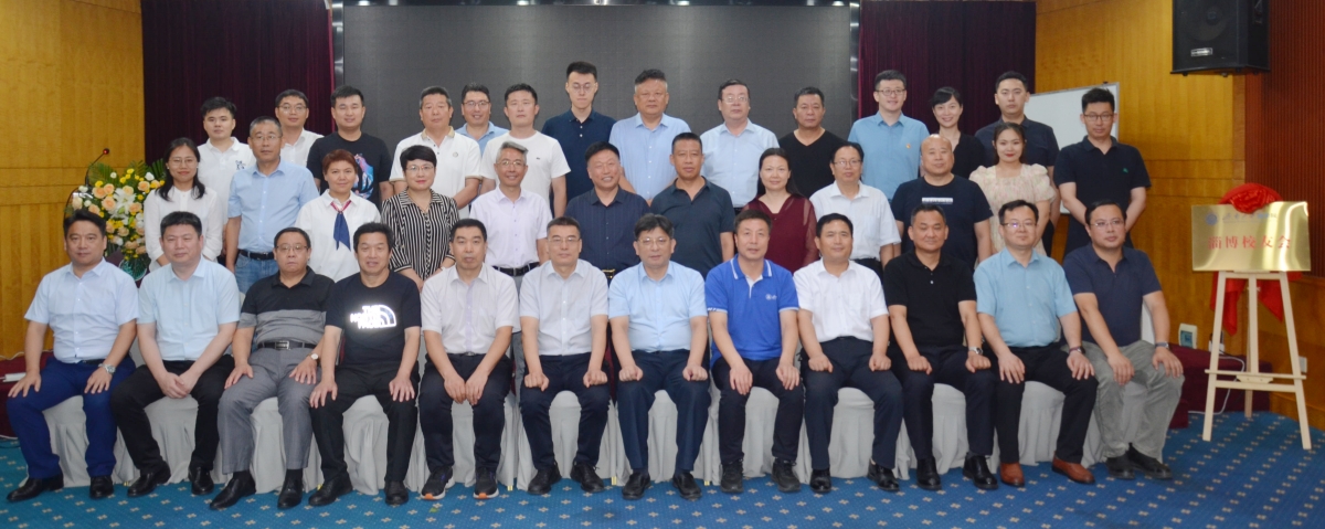 会上举行了淄博校友会揭牌、授旗仪式,并为第一届校友会成员颁发聘书。