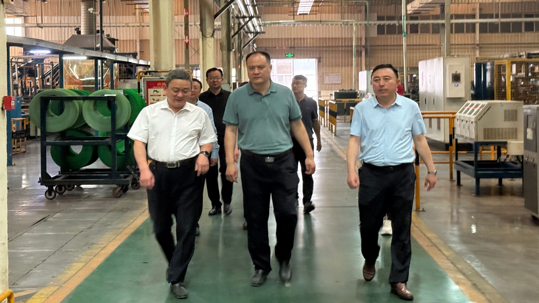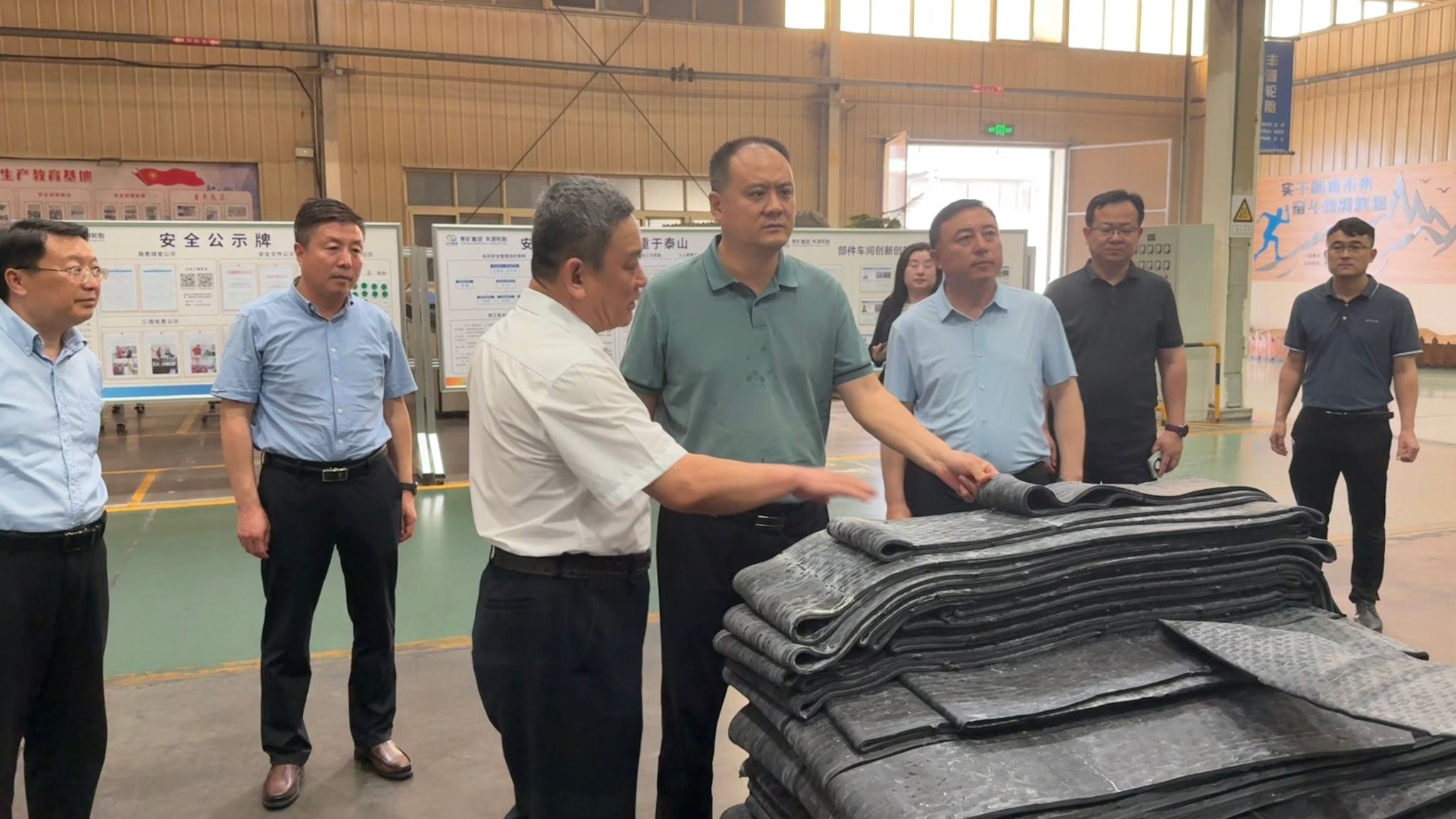 张庆国一行首先来到丰源轮胎制造股份有限公司,实地考察智能化生产车间与企业研发中心。座谈会上,丰源轮胎制造股份有限公司控股股东枣矿橡胶集团党委书记王宜臣系统介绍了企业在绿色智造、技术研发及产业链布局方面的成果,并表达了与PG App