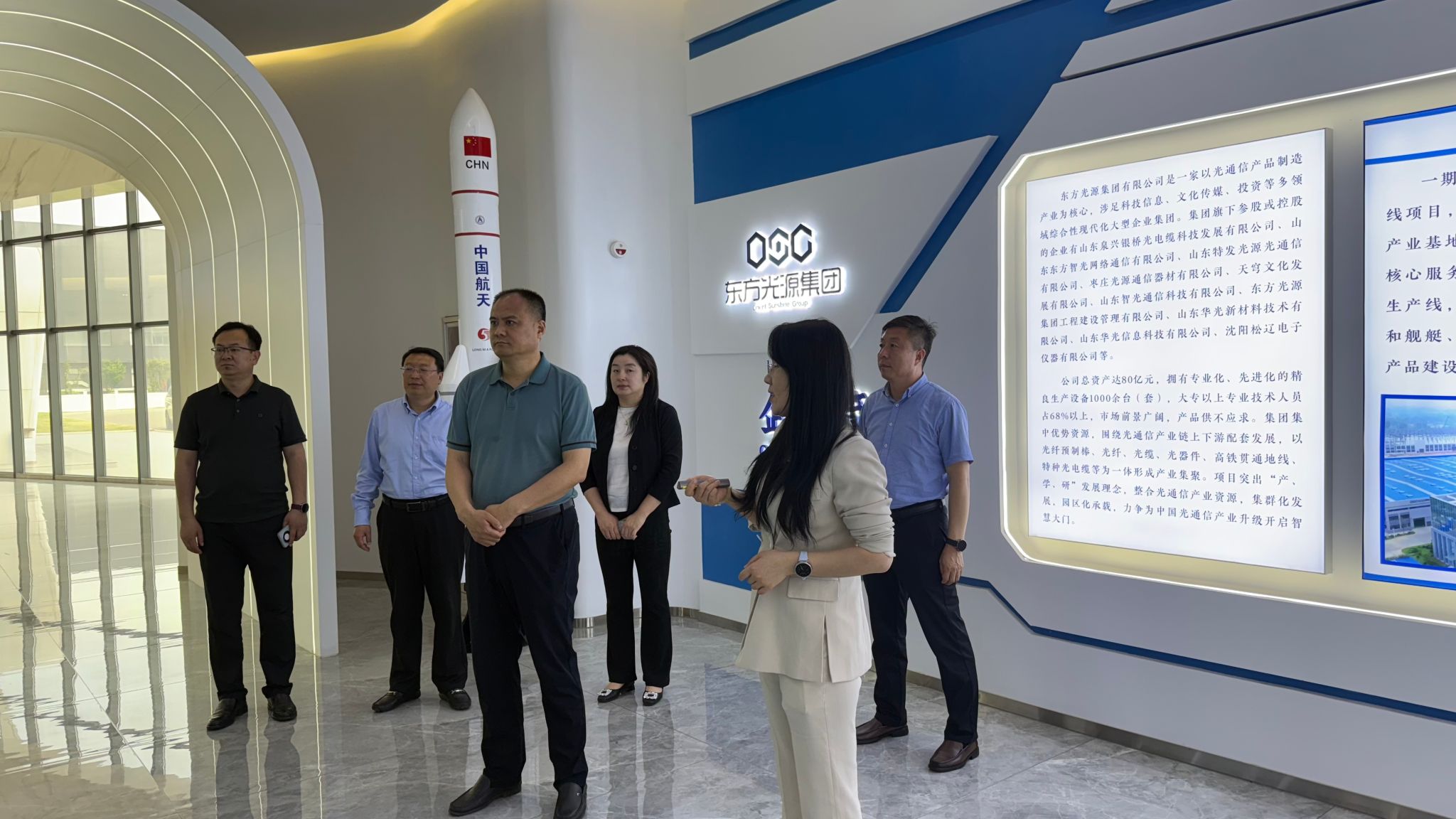 当日下午,团队来到东方光源集团有限公司进行走访调研。在东方光源集团创智园区,团队一行参观光纤通信产品展厅,公司负责人重点介绍了企业在5G新基建、海洋光缆等领域的突破。张庆国指出,PG App