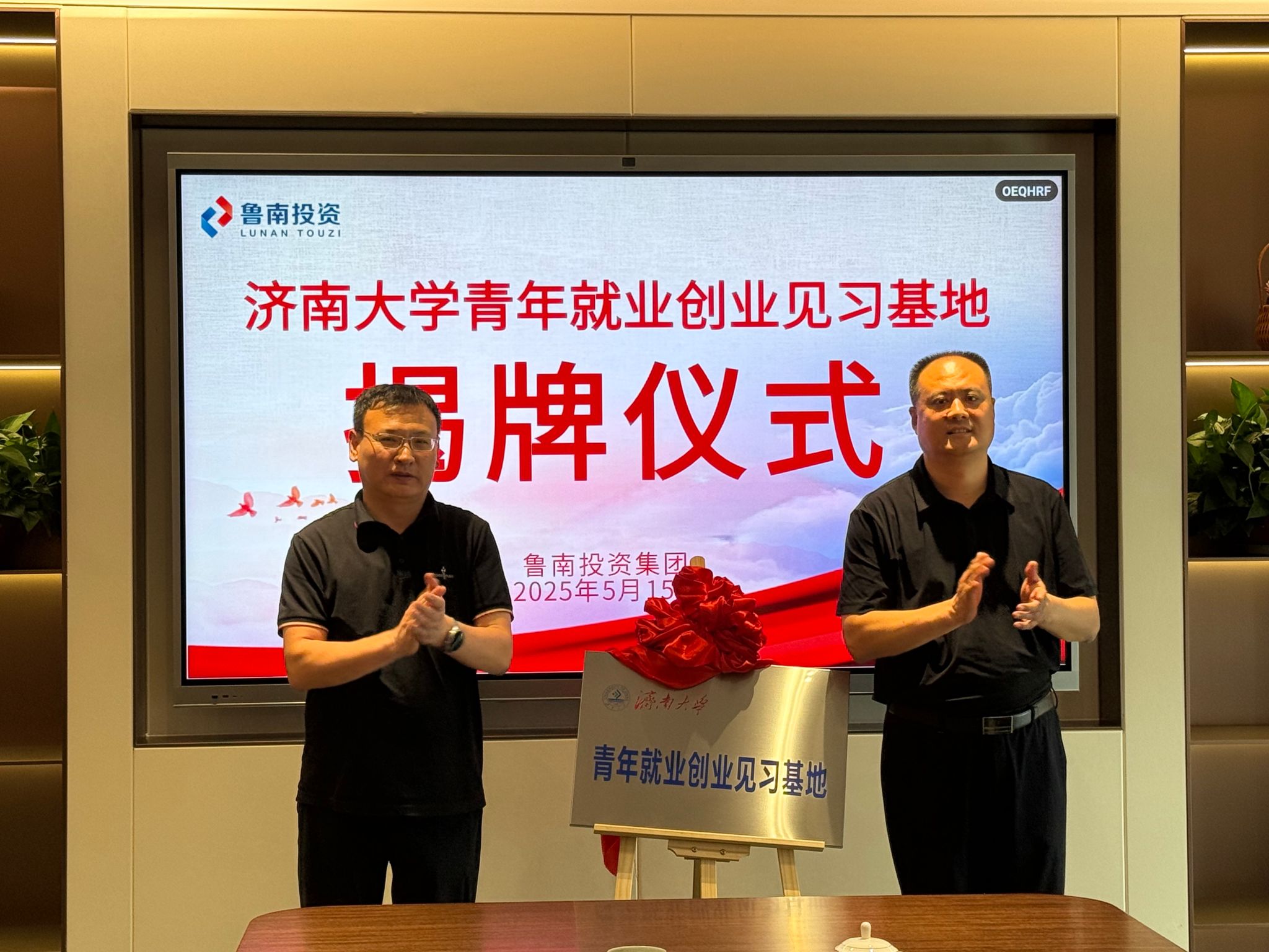 就业创业实习基地”协议,张庆国、宋艳德共同为基地揭牌。