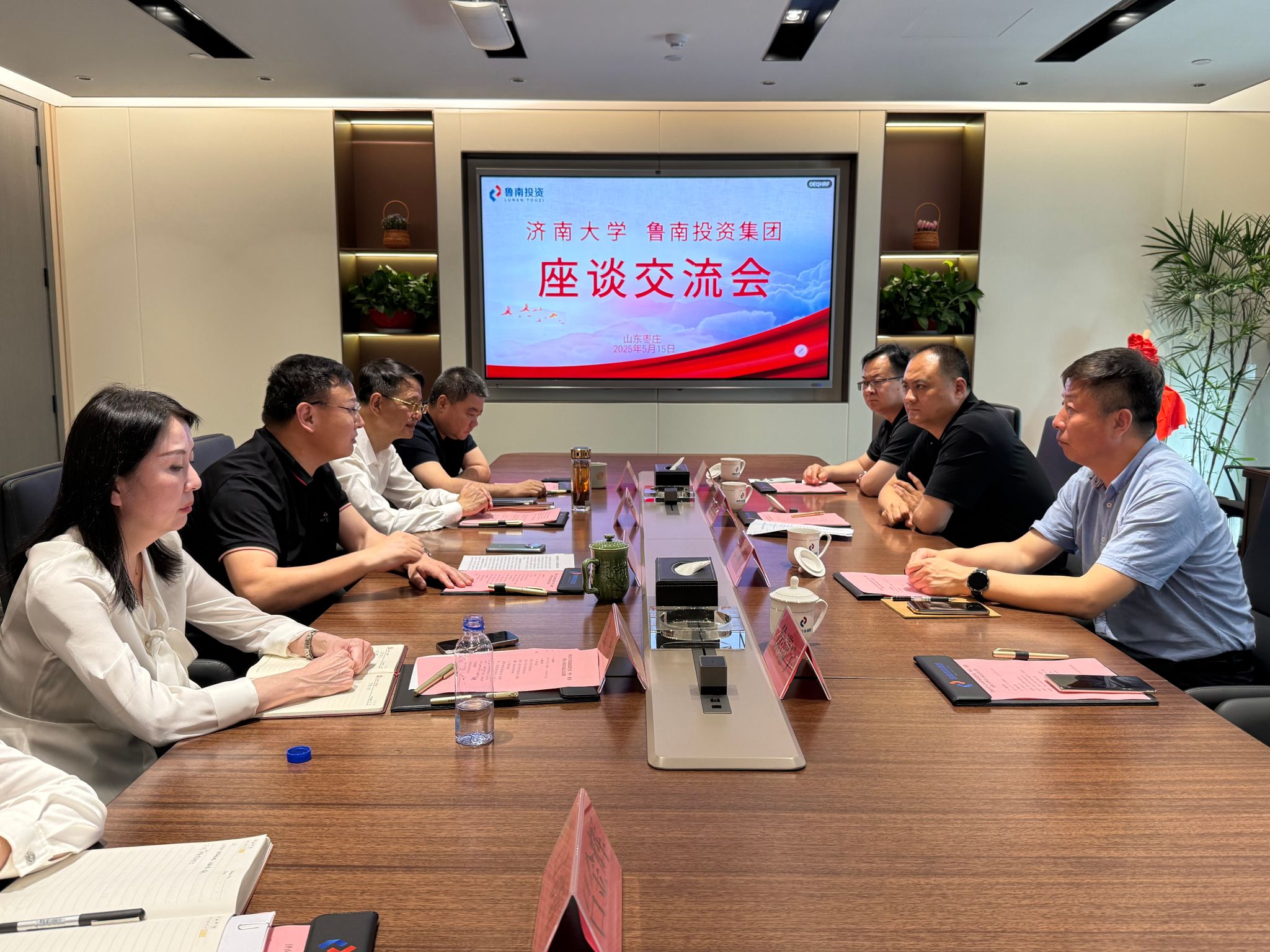 第二日上午,团队一行来到枣庄市国防教育训练基地、鲁南发展投资集团参观座谈。在鲁南发展投资集团座谈会上,总经理宋艳德详细介绍了集团的产业布局和发展理念,深入剖析了区域经济布局与产融结合趋势,期待与PG App
