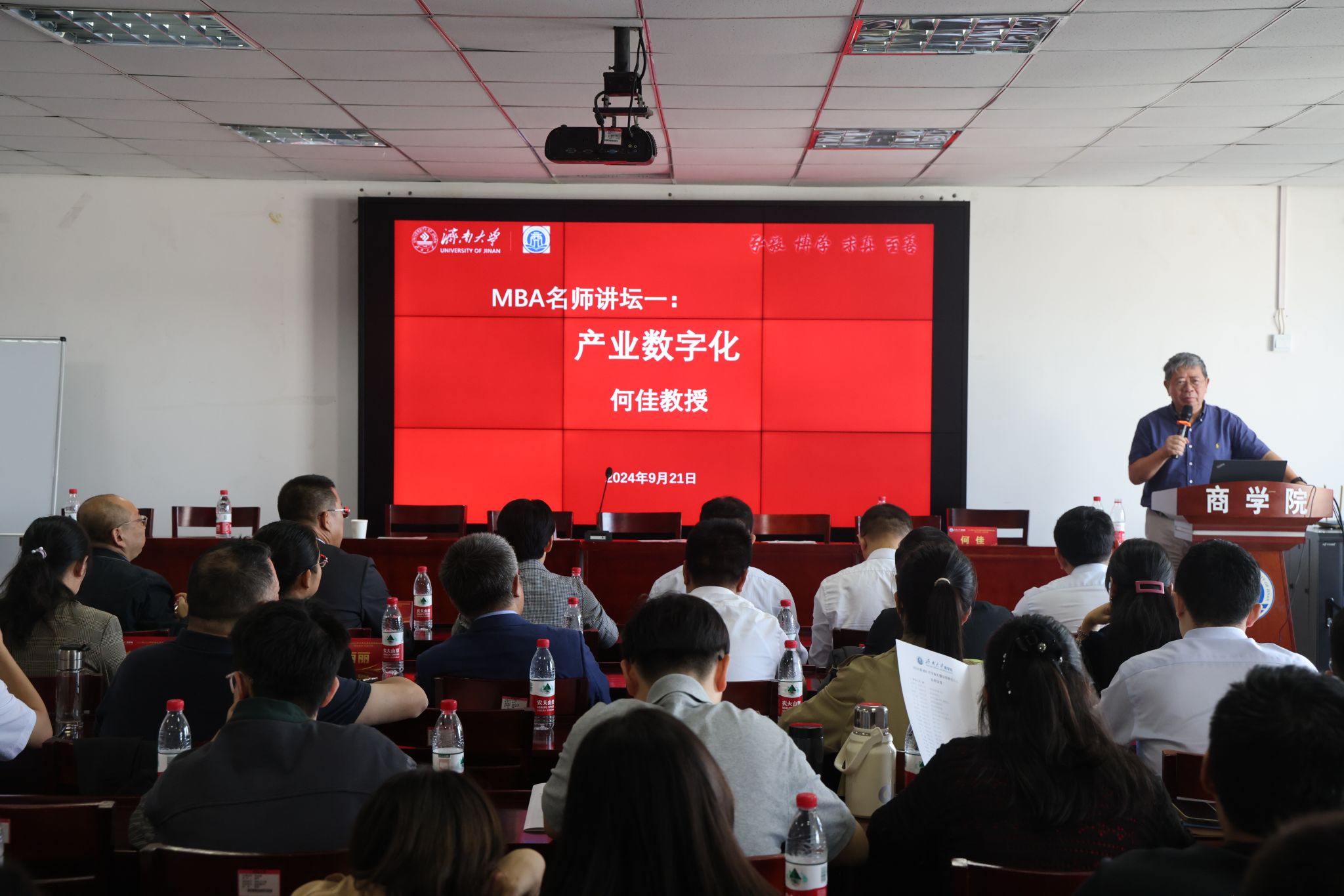 9月21日上午,山东大学讲席教授、长江学者何佳在舜耕校区经管楼615教室为部分MBA校内外导师和2024级MBA新生2024级MBA新生做了题为“产业数字化”的专题报告。MBA中心主任朱瑾主持报告。