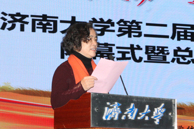 Mrs. Zhang Shuqiu made a speech, congratulating on the success of the festival. She pointed out that the festival has become a unique brand and “cultural card” on the basis of UJN’s various cultural activities, which demonstrates that UJN has paid highly attention to its top-level design, sought inspiration from different majors and tried to make breakthrough to better serve its teachers and students. The holding of the festival is not only a practical answer to the questions like “what kind of students to cultivate, how to cultivate and for whom to cultivate,” but also an effective exploration of UJN’s goal to cultivate students with healthy physique, sound personalities and all-round development. Mrs. Zhang hoped that all students could seize the time and remain true to their original aspiration in study; they could also build up their physique and carry forward the spirit of physical education such as striving for excellence to contribute the realization of Chinese dream.